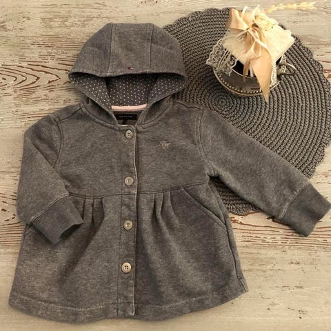 Kuvanmukainen vetoketjuhuppari teddyvuorella tytölle. Koko 80. Hyväkuntoinen ja ehja. En huomannut moitteita.