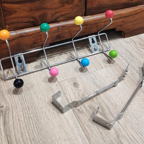 Myydään retroilijalle tällainen vanha muovinaulakko, jossa värejä riittää.
