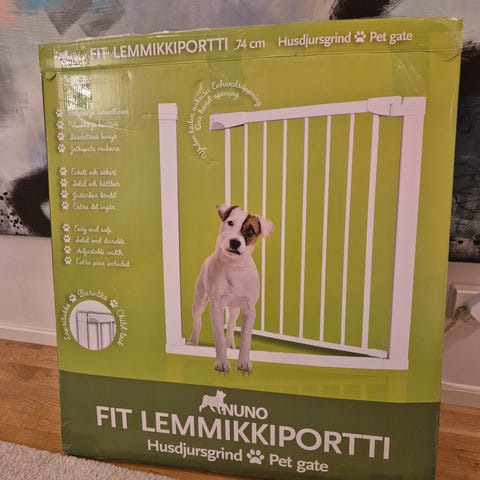 Portti soveltuu sellaisenaan 73,66-86,36 cm leveisiin oviaukkoihin. Sisältää kaksi jatkopalaa (10,16 cm ja 15,24 cm), joilla leveys saadaan kasvatettua jopa 111,76 cm:iin. Korkeus: 76,2 cm. Portin oviaukon leveys: 40,6 cm. Pieneläinoven koko: Leveys 17,8 cm x korkeus 25,4 cm. Väri: Valkoinen. Kuin uusi! Muutaman kuukauden oli käytössä. Uuden hinta puuilossa 75 euroa. Vain nouto.