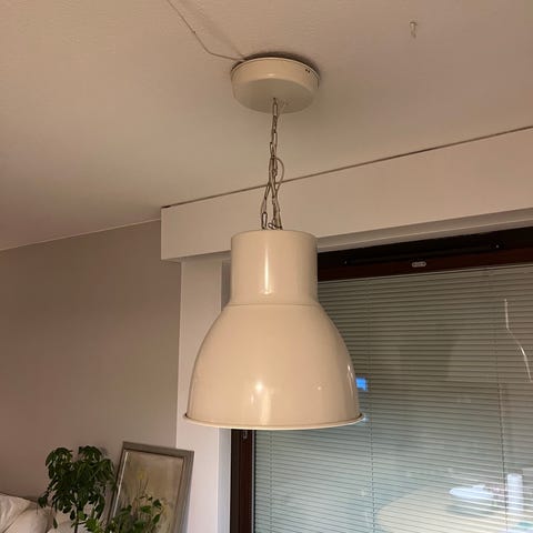 IKEA riippuvalaisin, jossa kaksikerroksinen punottu bambuvarjostin luonnonvärisenä. Varjostin muodostaa pyöreän, hieman porrastetun muodon ja päästää valoa läpi punoksen väleistä. Lampunkanta ja johto ovat tummat, pistoke kattorasiaan. Sopii yleisvaloksi esimerkiksi olohuoneeseen, ruokailutilaan tai makuuhuoneeseen. Polttimo tulee mukaan.
