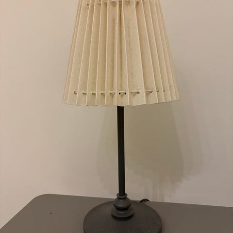 Valaisimen jalka terästä, haitarilla voi säätää lampun asentoa,