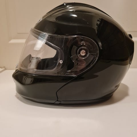 Moottorikelkkailukypärä umpikypärä musta. Kypärässä on kirkas visiiri ja täyspitkä leukasuoja. ECER22-05.Koko 57-58 cm.Paino n. 1600 gr.Sisäosa on pehmustettu ja siinä on leukahihna pikalukituksella. Pari kertaa päässä ollut ja liian pieneksi todettu. Sähkövisiiri.