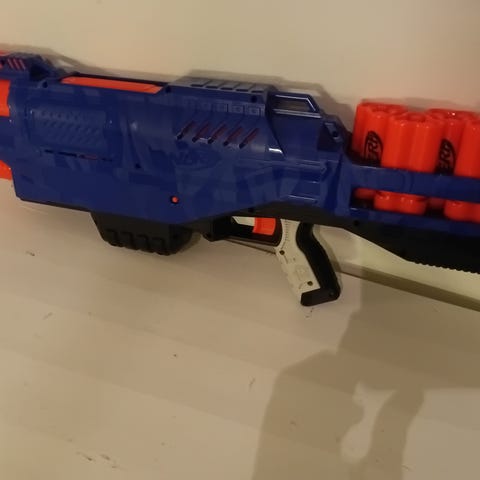 Nerf leluaseet ja lippaat. Kuvassa useita eri mallisia ja -värisiä Nerf-vaahtomuovinuolia käyttäviä leluaseita sekä useita irtolippaita. Sopii leikkimiseen Nerf-nuolien kanssa. Myydään kuvassa näkyvinä kokonaisuuksina.