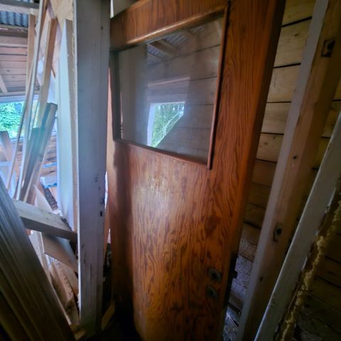 50-luvun asunnon remontista yli jäänyt alkuperäinen sisäovi. Karmia ei valittavasti saatu mukaan.