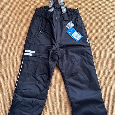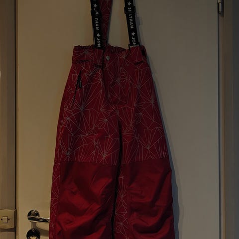 Ruosteen oranssit toppahousut kuin uudet, lumilukot lahkeissa, henkselit.