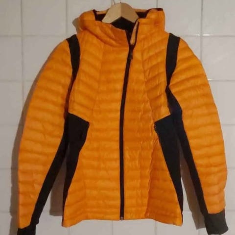 Muutamasti käytetty ja juuri pesty huipputakki. Joustavuutta ja lämpöä samassa takissa. Mielestäni aika pieni L-koko.