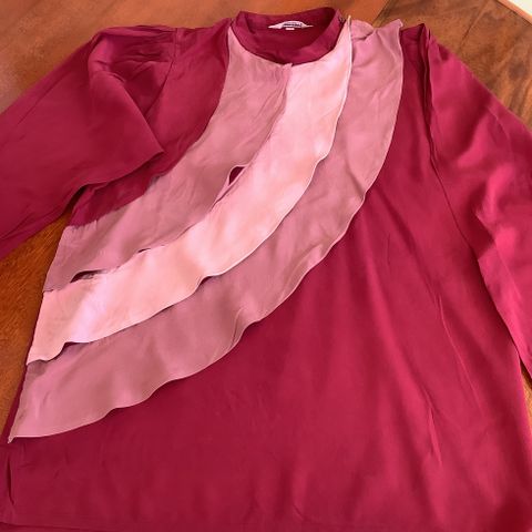 Siisti retrohenkinen silkkipusero, jossa etutasku ja hihansuissa korkeat kuminauhat.