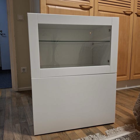 Myydään Bestå-sarjan lasiovi valkoisella kehyksellä, ei saranoita.