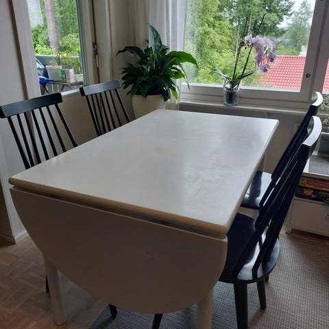 Sopii hyvin esim pieneen asuntoon, voidaan käyttää kahden ja neljän hengen pöytänä.