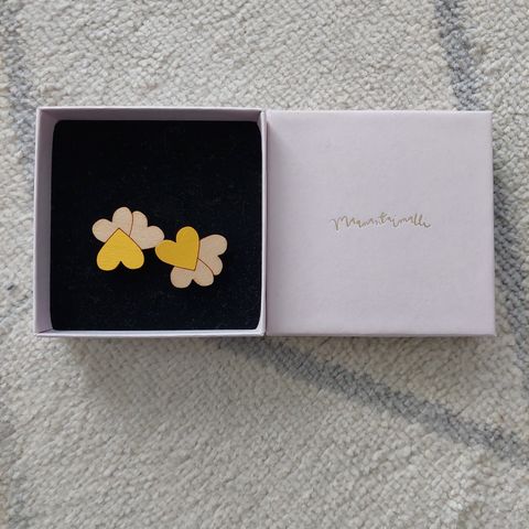 Erinomaisessa kunnossa olevat Pakahdus-korvikset. Koivuvaneri: pinkki, kirurginterästä.
