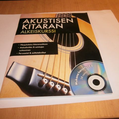 Akustisen kitaran alkeiskurssi oppikirja ja harjoitus-CD. Kirja sisältää perusasioita akustisen kitaran soitosta, kuten perusotteet, soinnut, komppaukset ja harjoituksia. Mukana tulee harjoitus-CD, jonka avulla voi kuunnella ja harjoitella kirjassa esitettyjä esimerkkejä ja kappaleita. Soveltuu akustisen kitaran alkeiden opiskeluun itseopiskeluna tai opetuksen tukena.