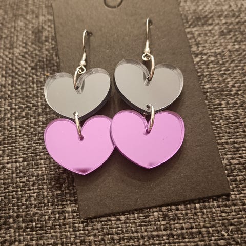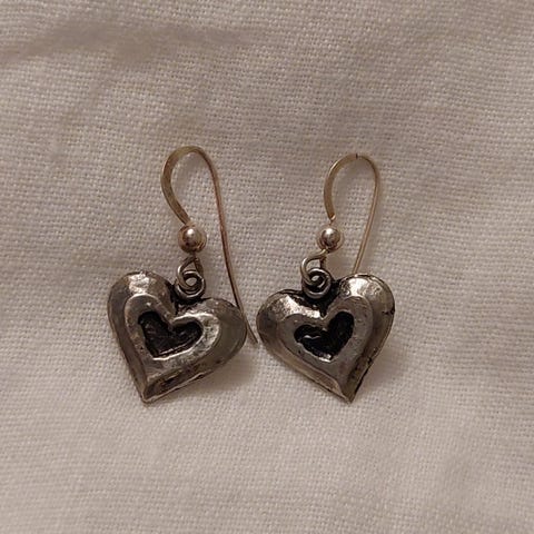 Hyväkuntoiset, vähän käytetyt korvakorut mustilla sydämillä. Tyylikkäät ja särmikkäät korut.