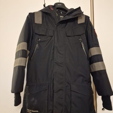 Uusi (laput kiinni) musta otsikon mukainen untuvatakki. Oli minulle (175 cm / 85 kg) hieman liian iso, olen normaalisti M ja L koon välimaastossa.