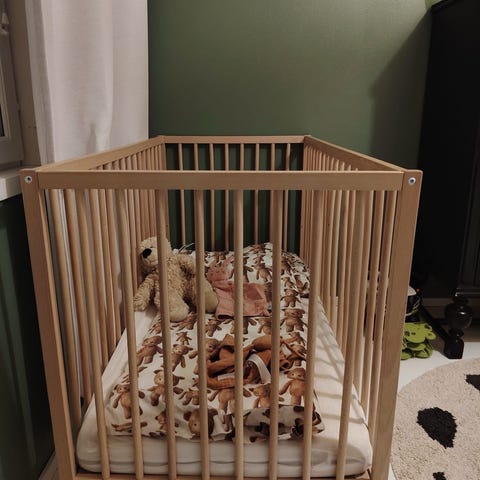 Näitä on kaksi myynnissä. Teimme nämä itse omaan tarpeeseen kahdelle taaperolle, joilla oli pieni yhteinen huone. Näin saimme pinnasängylle lisää käyttöikää ja toinen lapsista täyttää pian neljä ja käytti samaa sänkyä syntymästä saakka tähän päivään.