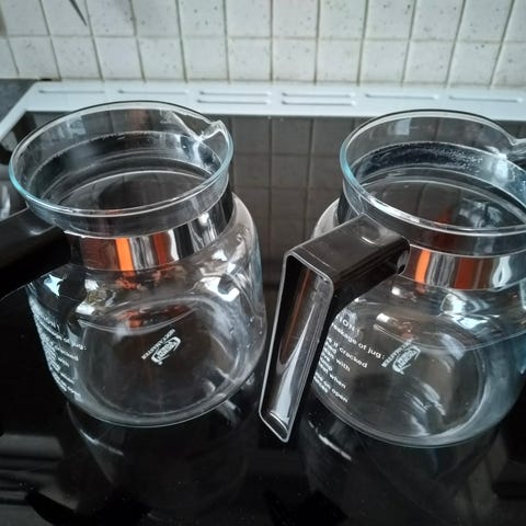 Moccamasterin lasipannu ja vanha suodatin suppilo. Yhteensä 20 euroa