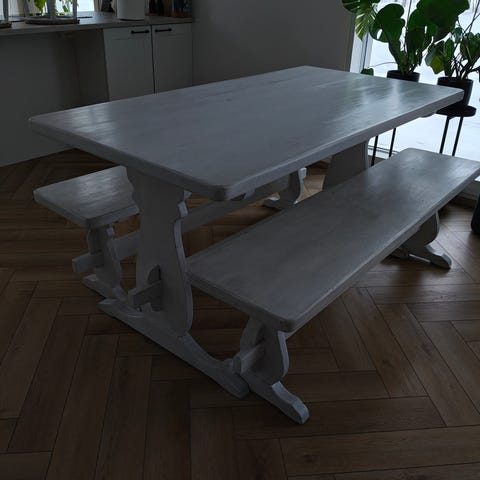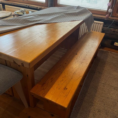 Myydään hyväkuntoinen pirttikalusto.Pöytä 180x80. Pitkät penkit 180x36. Pääty penkeissä lakka vikaa ne saa kaupan päälle.