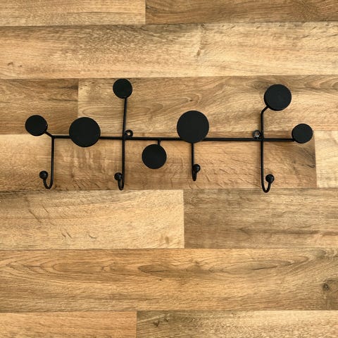 Käyttämätön naulakko, jäänyt kaapinperukoille. Metallia