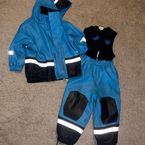 Vedenpitävä kuraasu hitsatuilla saumoilla ja lämpimällä fleecevuorella, erinomaisessa kunnossa. Ostettu uutena ja käytetty vain pari kertaa yhdellä lapsella. Ei käytön jälkiä. Jalkalenkit kunnossa. Pesty hajusteettomalla pesuaineella.
