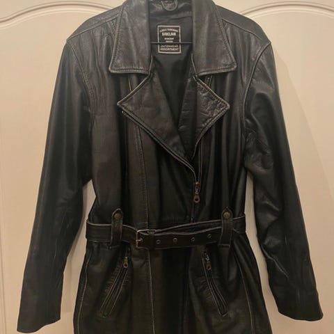 Musta nahkatakki vyöllä
