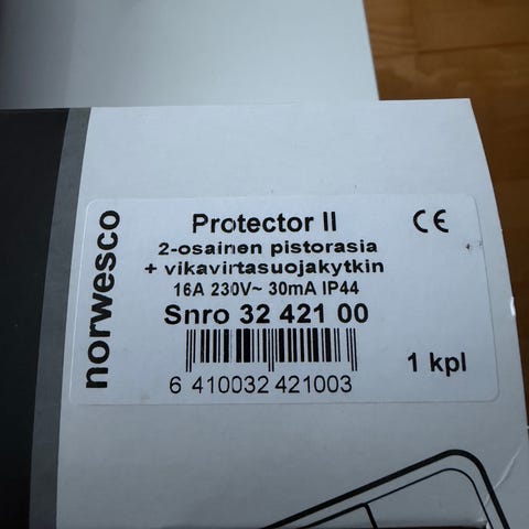 Norwesco protector 2-osainen pistorasia vikavirtasuojakytkimellä.