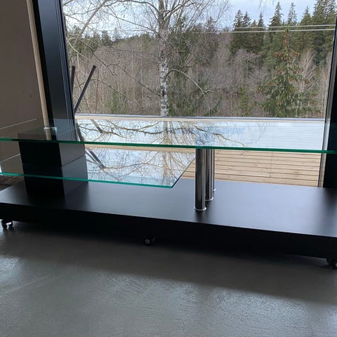 Musta metallinen tv jalusta. Mukana tulee ruuvit yms kiinnitystä varten. Nouto ullanlinnasta