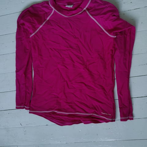 Punainen Polarn o. Pyret UV-uimapaita, jossa vaaleanpunaiset hihat.