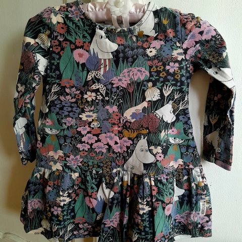 Käyttämättömäksi ja pieneksi jäänyt muumi mekko. Lyhyt hihainen ja pitkähkö. MMM