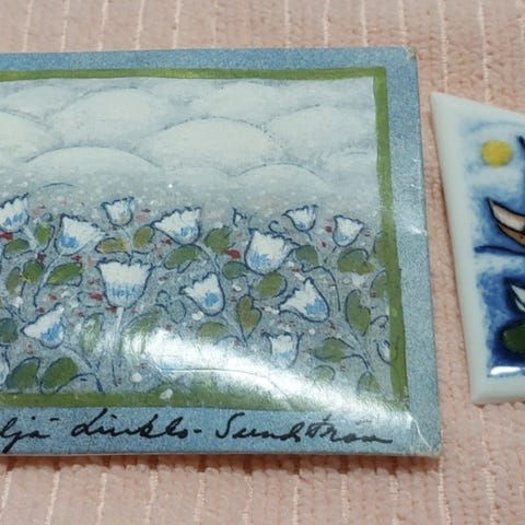 Myydään kaunis Arabia Heljä Liukko-Sundströmin rintakoru. Korkeus 6 cm ja leveys 4,5 cm. Signeerattu Heljä Liukko Sundströmin allekirjoituksella.