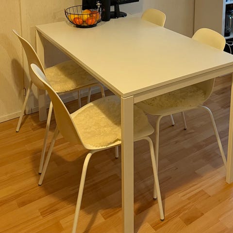 Perus hyvä pöytä ja kaksi tuolia. Pöytä on moitteettomassa kunnossa ja tuolien kunto on 7/10.
