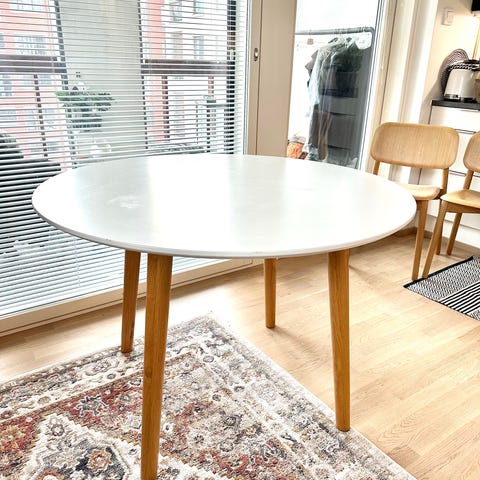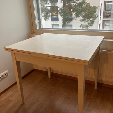 Siisti valkoinen ruokapöytä, lisäpalan koko 45 cm