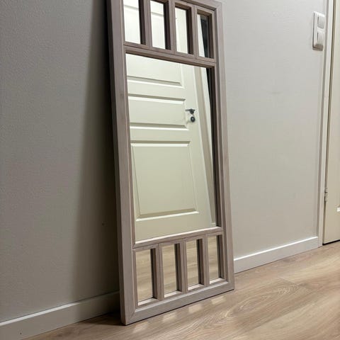 IKEA peili, jossa kultainen kehys. Täyskorkea malli sopii esimerkiksi eteiseen, makuuhuoneeseen tai pukeutumistilaan. Kehys on koristeellinen ja väriltään kullan sävyinen. Peili voidaan asettaa lattialle seinää vasten tai kiinnittää seinään valmistajan ohjeiden mukaisesti.