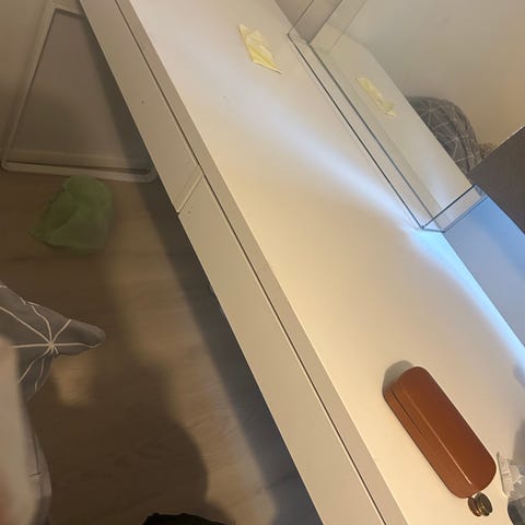 Myydään Ikean valkoinen Malm kampauspöytä. Kampauspöydällä on lasilevy päällä ja vedettävä lokerikko pöydän alla. Pöytä on erittäin hyvässä kunnossa. Oikeaan laitaan on laitettu itse koukku laukkuja varten. Pöydän ovh 159€