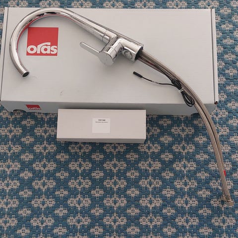 Krominvärinen keittiöhana. Yksivipuhana, jossa on kääntyvä juoksuputki. Soveltuu keittiöön tai kodinhoitotilaan tavalliseen vesikalustekäyttöön. Pesukoneventtiilillä.