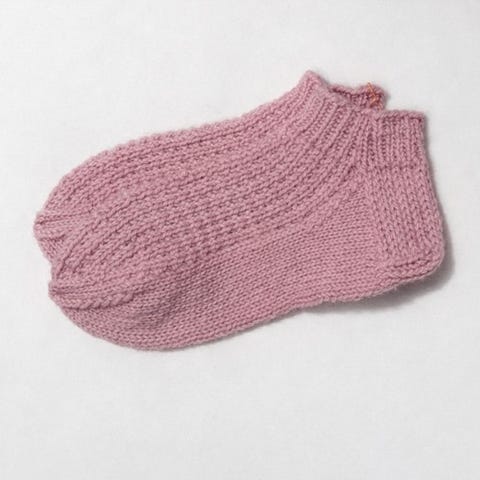 Uudet, itse kudotut vaaleanpunaiset nilkkavillasukat.