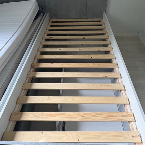 Jyskistä ostettu 90x200cm jenkkisänky (2019). Sänky ja verhoilu erittäin hyvässä kunnossa, samoin petauspatja! Myydään uuden sängyn tieltä pois.