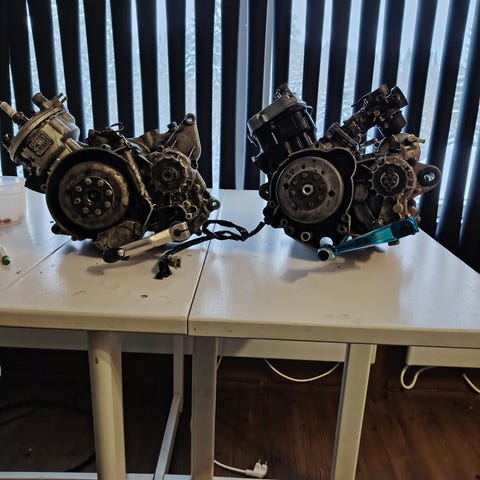 Kone just käytetty auki ja vaihdettu uusi tprän vaihtajan akseli sekä jasilin uusi kampi molemmat 0h ajettuja