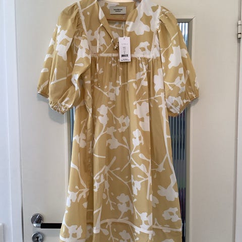 Myydään Ivana Helsingin Paula Suhosen suunnittelema mekko. Koristeellisia pallo- ja nappi yksityiskohtia. Väri vaalea beige. Hyvin vähän käytetty, erinomainen kunto.