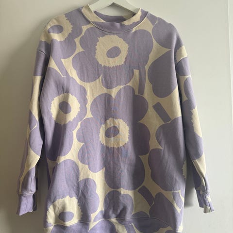 Marimekon värikäs college-pusero unikko-kuosilla. Koko xs. Hyväkuntoinen, hihansuussa haalea tahra, kts. kuvat.