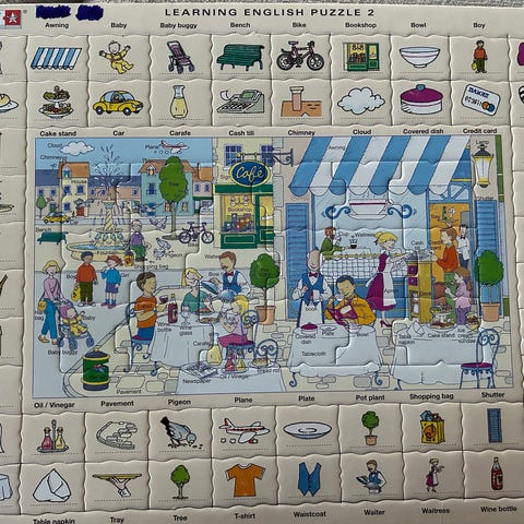 Playtive Let’s Learn English The Alphabet palapeli, jossa on 60 palaa. Palapelin aiheena on englannin aakkoset, ja paloissa on kirjaimia sekä niihin liittyviä kuvia. Ikäsuositus on 3+ vuotta. Soveltuu aakkosten ja englannin sanaston harjoitteluun leikin kautta.