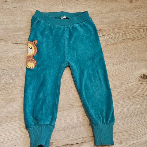 Me & I lasten housut, koko 86. Ruskeat puuvillahousut, joissa siniset tehosteraidat ja taskujen reunukset. Joustava resorivyötärö ja lahkeensuut. 86/92cm. Siisti, vähän käytetty kunto - vähän pesuhaalistumaa mutta ei varsinaisesti kulumaa.