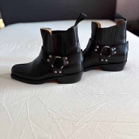 Nahkaset talvi bootsi kengät, sisällä on 100% puuvillaa, muuten hyvässä kunnossa mutta nahkapinta kärsinyt kosteuden takia.
