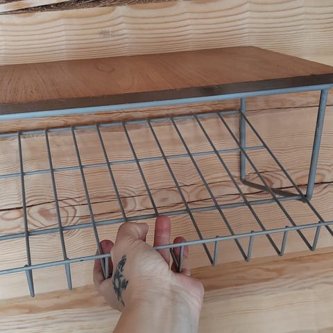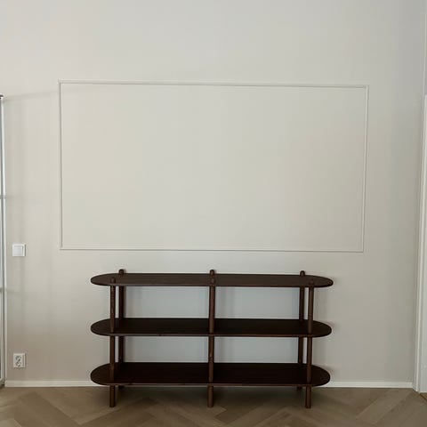 Anni Pitkäjärven suunnittelema Hakolan musta Lempi-seinähylly. Kunto hyvä, hyllylevyssä pientä kulumaa/käytönjälkeä.