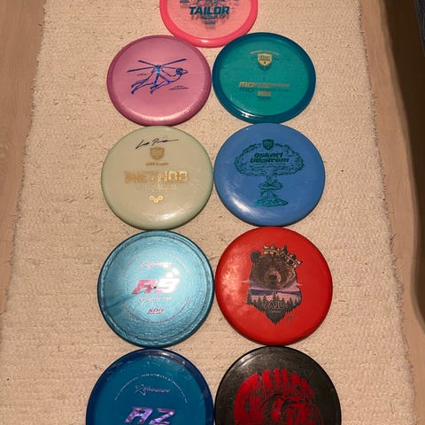 Suurin osasta kiekoista on pieniä köytön jälkiä ja muutama on uuden veroisia. mieluusti koko pakettina myyn ja löytyy ”harvinaisempaa” glow senseitä nimmarilla. mutta jos joku yksi kiinnostaa niin voidaan keskustella siitä. Löytyy myös lisää kiekkoja ja jos haluaa ostaa koko ”bägin” voimme siitäkin keskustella (EN postita)
