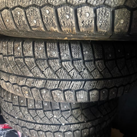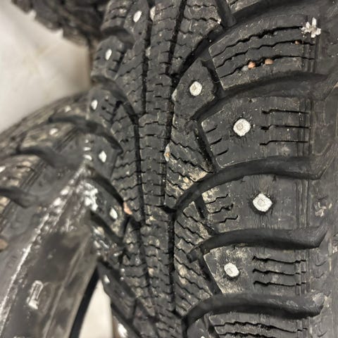 2 vanhaa Hankookin nastakumia joista puuttuu n. Puolet nastoista. Nyppimällä kesäksi tai hätävarakumeiksi. DOT2114. Pintaa n. 5mm