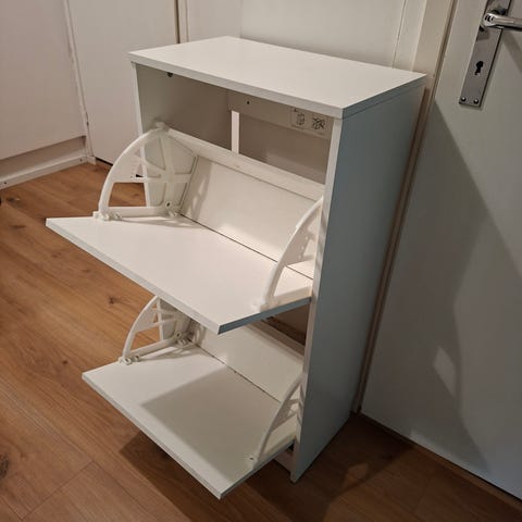 Täysin ehjä kuvien mukainen kenkäkaappi. Joitain käytön jälkiä.