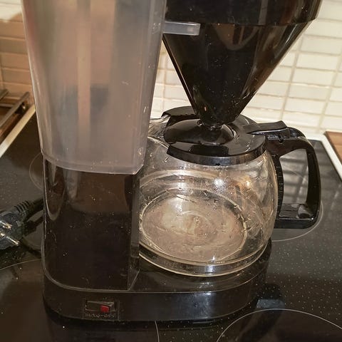UPPHETTA-merkkinen kahvin/teenkeitin. Valmistettu lasista, metallista ja ruostumattomasta teräksestä.
