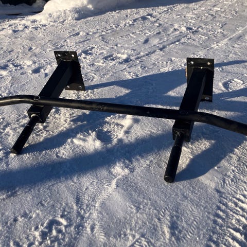 Levypainoteline. Metallinen teline, jossa useita vaakasuuntaisia tappeja levypainojen säilytykseen sekä yläosa esimerkiksi käsipainojen tai muiden varusteiden säilyttämistä varten. Mukana levytanko ja useita levypainoja eri painoissa. Soveltuu kotisaliin levypainojen ja tangon järjestelmälliseen säilytykseen.