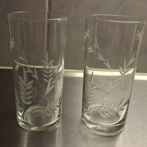 Myydään kuvanmukaiset 2kpl kauniit hiottua lasia olevat vintage lasit.