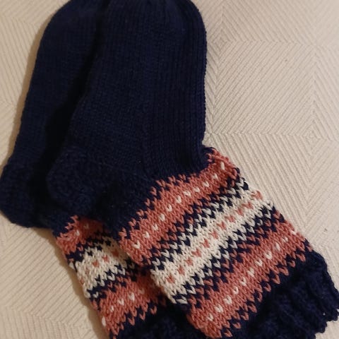 Lämpimin ajatuksin neulotut villasukat, kotimaista Seitsemän veljestä -lankaa, 80% villaa, koko 39-40. Hinta 24 e + postimaksu 5,50 e. Lähetän sukat sinulle, voit maksaa tililleni saatuasi ne.