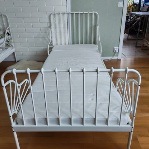 Hyväkuntoinen ja ehjä sänky. Sänky on jatkettava, eli saa pienemmälle ja isommalle. Sängyn saa säädettyä kolmeen eri kokoon. Mukaan saa jatkettavan patjan halutessaan.